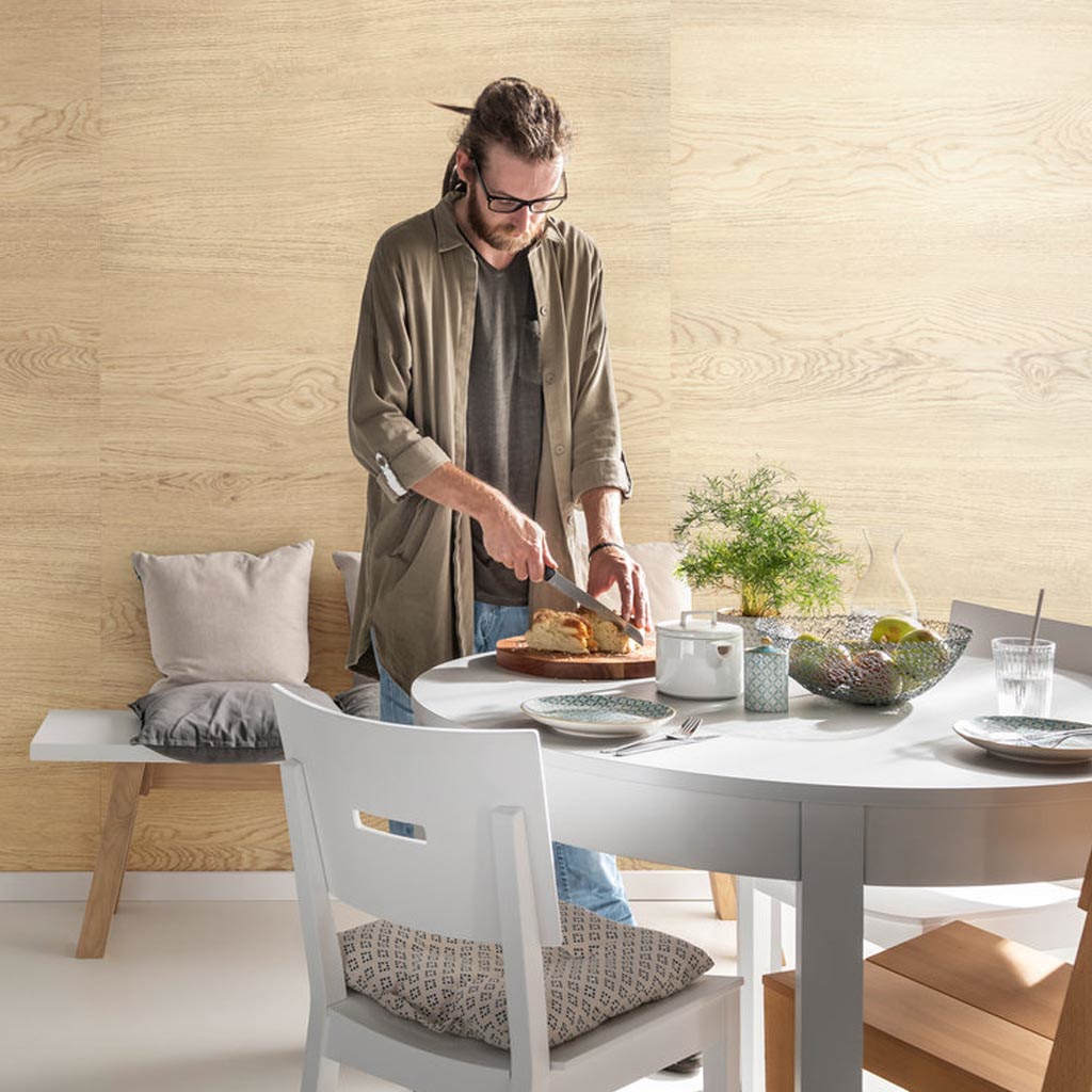 El Panel Wood Ash se presenta en una tonalidad beige que aporta confort y calidez al espacio. Destaca su aspecto auténtico y natural a imitación de la madera, que aporta belleza al espacio.