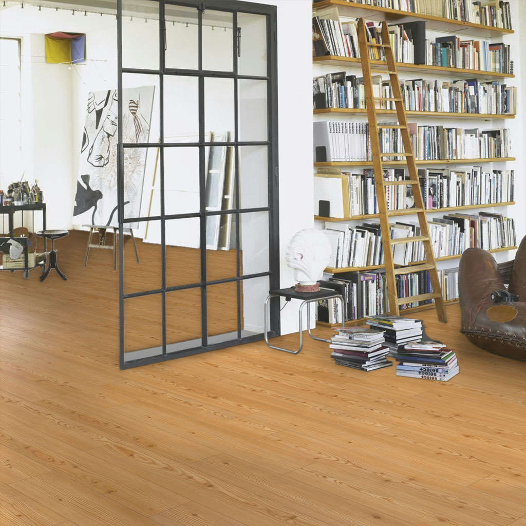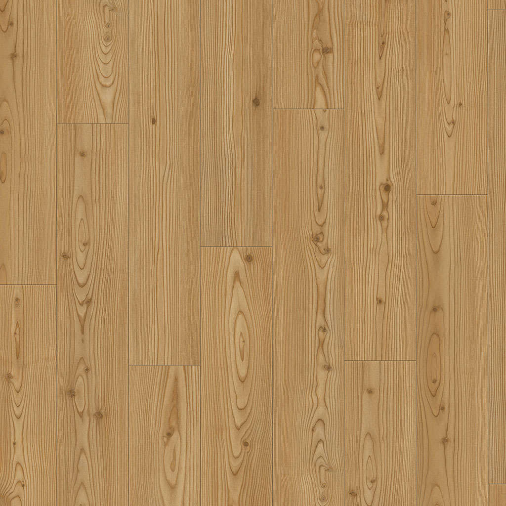 Este suelo laminado destaca por su gran calidez, en la tonalidad de los marrones claros y dorados. Consigue un efecto muy personal y auténtico. La imitación de la madera de alerce, en su versión más natural, combina muy bien en ambientes más clásicos y rústicos. Es adecuado tanto en espacios amplios como reducidos, logrando un ambiente alegre y acogedor. El protagonismo de las vetas y nudos de la madera te ayudará a conseguir ese efecto de naturalidad y autenticidad que imita a la madera con gran realismo. Para crear un bonito contrapunto con la decoración, escoge el mobiliario y los textiles en tonos más claros. Conseguirás crear un mayor contraste y un resultado muy atractivo.