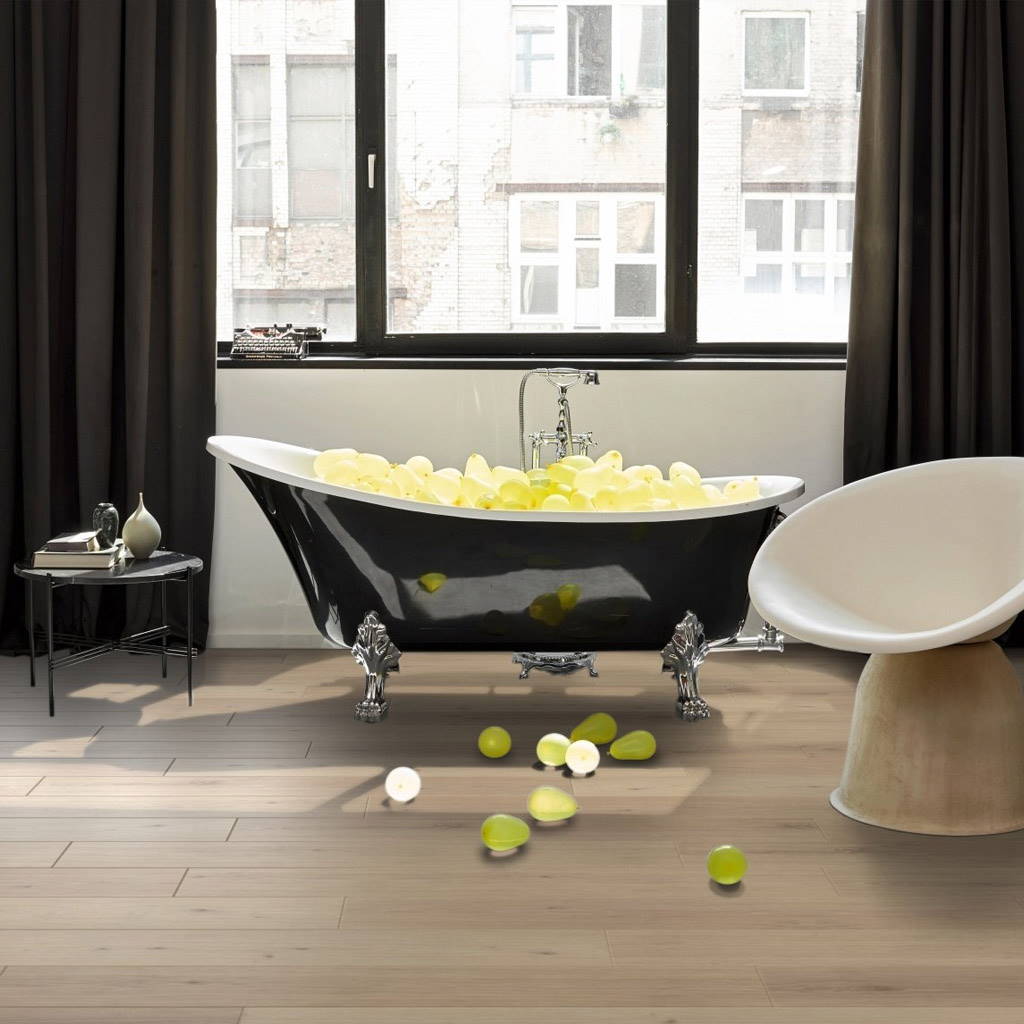 El suelo de diseño Classic 2070 es 100% resistente al agua, cuenta con sistema Comfort.Click y destaca por su estética y textura. Como novedad, este suelo cuenta con base acústica incorporada para una instalación todavía más sencilla