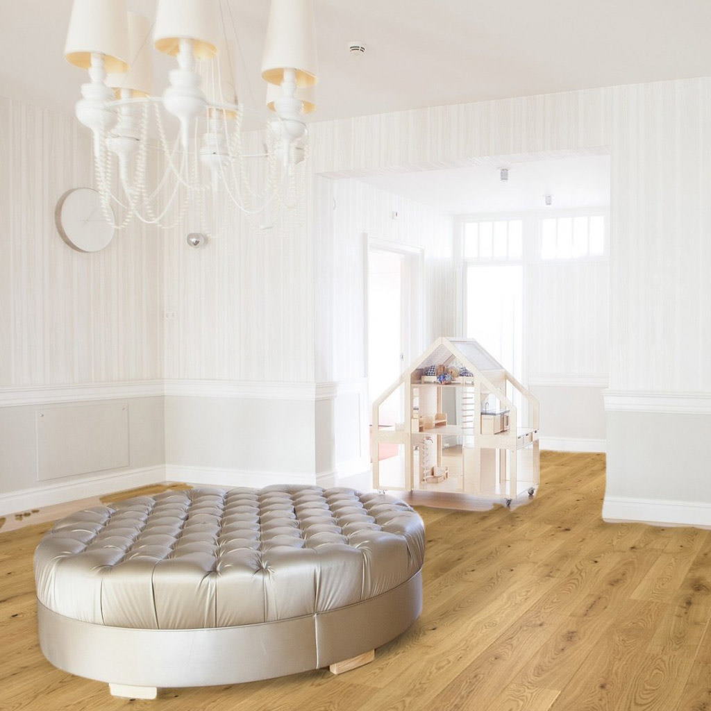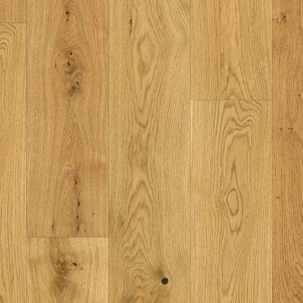 El color marrón del roble en este suelo de madera, con una rica variedad en matices y en una tonalidad media, lo hace idóneo para espacios más amplios cuando quieras lograr un ambiente más alegre y acogedor. El atractivo de las vetas y nudos de la madera de roble aportan un aire rústico y clásico que combina a la perfección con estilos más tradicionales y rústicos. Para conseguir el contrapunto con la decoración, escoge el mobiliario y los textiles en tonos más claros. Así lograrás un mayor contraste y un resultado de gran atractivo visual.