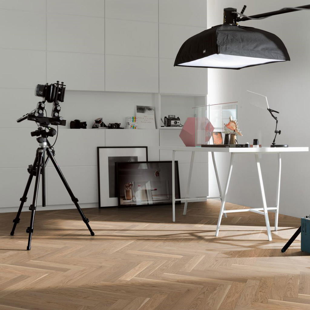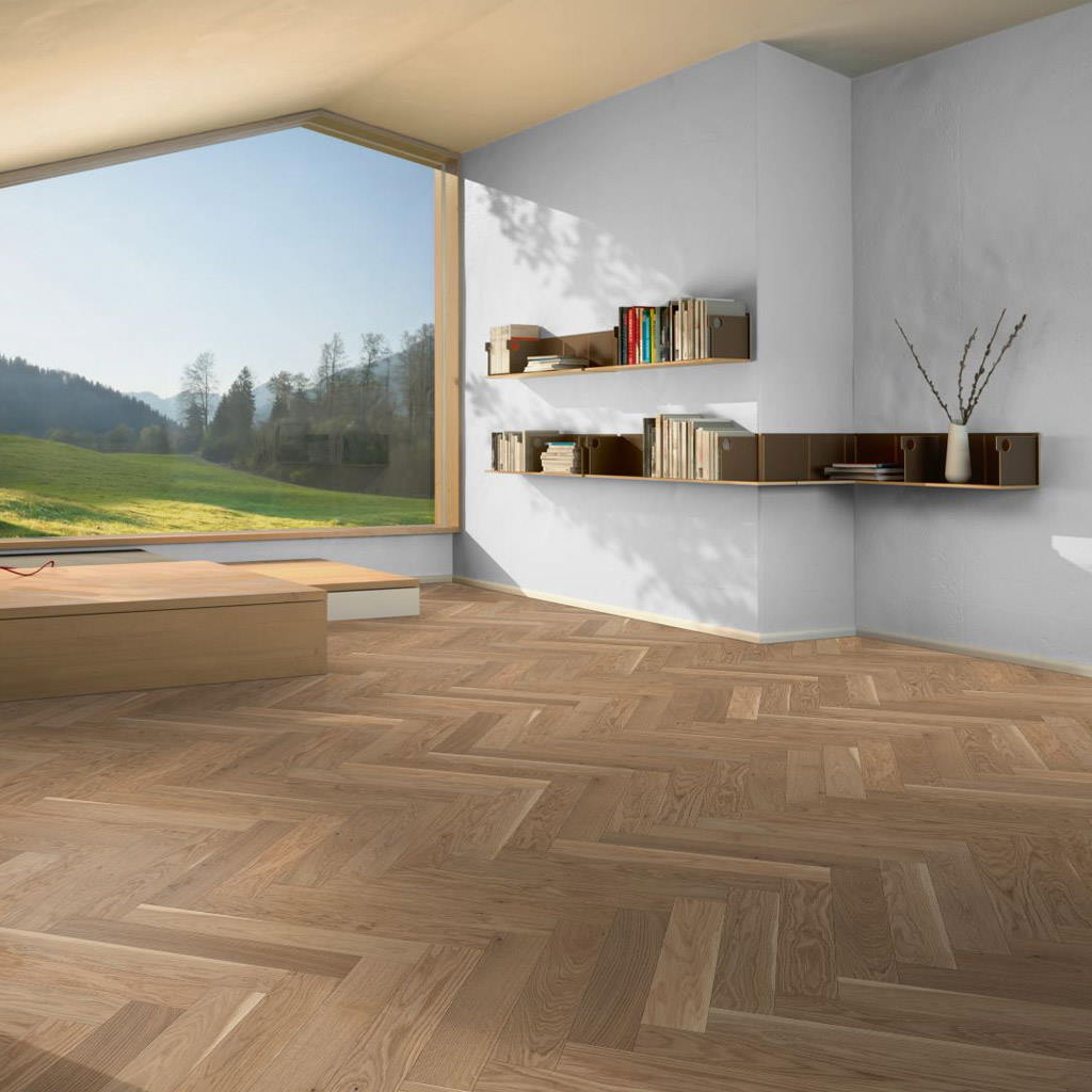 El patrón de espiga aporta un mayor dinamismo al suelo, subrayando el carácter original de la madera. Suelos que ofrecen una gran calidez y confort al caminar sobre ellos.