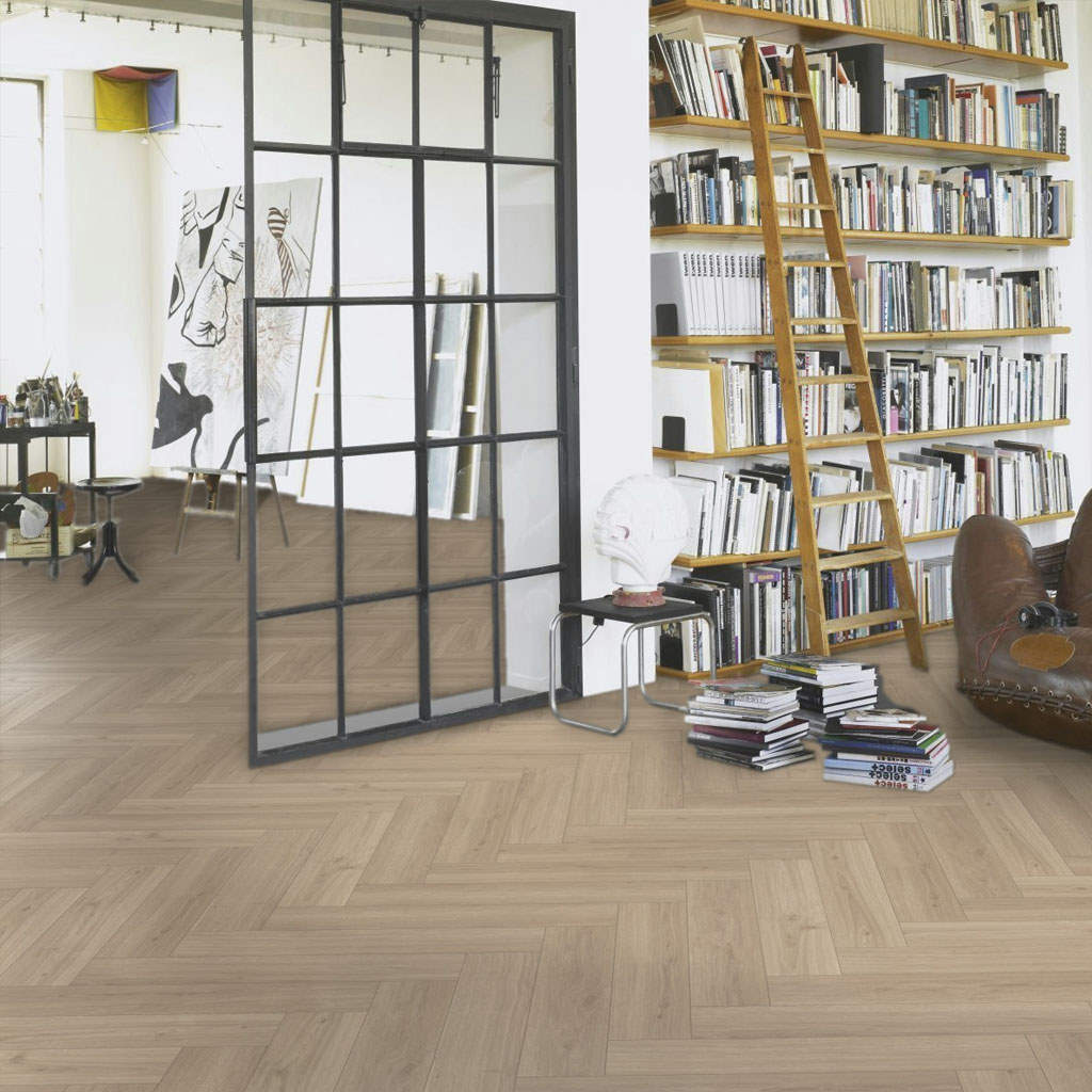La estructura elegante de este suelo de vinilo y su diseño de espiga aporte una gran exclusividad y belleza a cualquier estancia. Su tonalidad, en marrón claro, lo convierte en un suelo vinílico que combina muy bien tanto en espacios amplios como en espacios más reducidos, aportando luminosidad y claridad a la estancia. La gama de marrones de la madera de roble proporciona calidez al ambiente y un resultado estético que combina muy bien tanto en estilos modernos como en estilos clásicos. Para lograr contraste con la decoración, escoge el mobiliario y textiles en tonos más oscuros. Los estores y cortinas, si los eliges en tonos claros, blancos y beige, lograrán un efecto de mayor luminosidad.