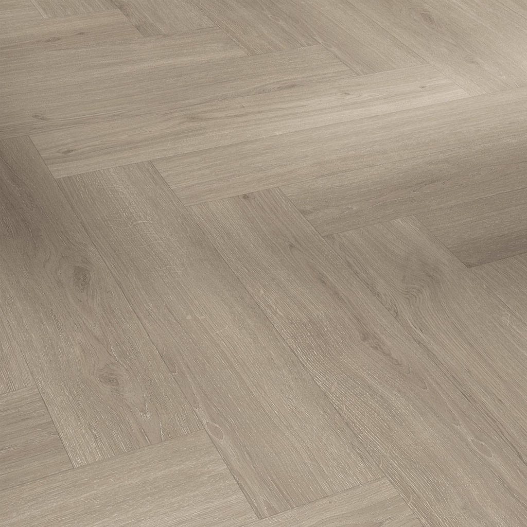 La colección Trendtime 3 de Vinilo SPC de Parador ofrece suelos vinílicos con diseños de espiga que imitan los clásicos suelos de madera con una óptica y tacto muy realistas gracias al cuidado de cada detalle y al minucioso diseño de las vetas y los nudos a imitación de los elegantes suelos de madera. Se presenta en formato tablilla para su colocación en formato espiga.