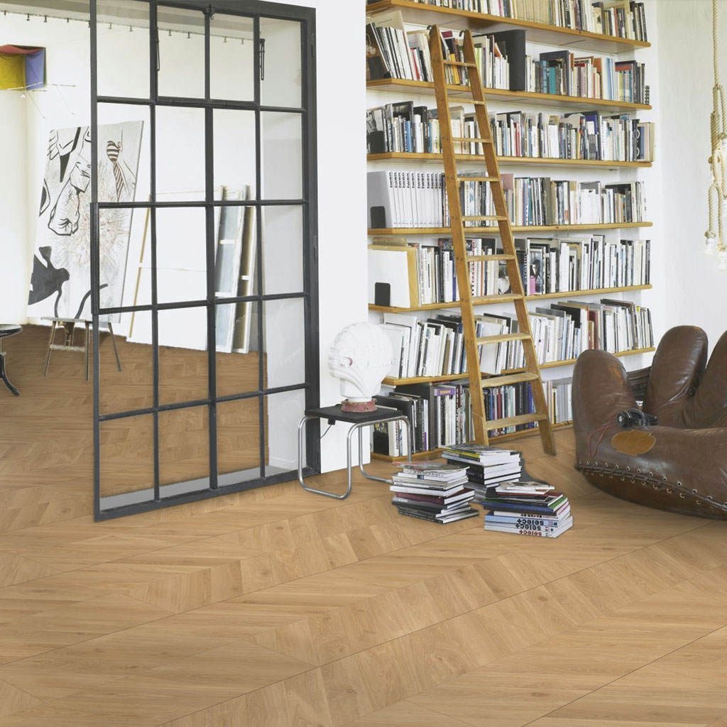 El diseño en punta hungría de este modelo de laminado aporta elegancia y exclusividad a cualquier estancia. La estructura sedosa mate, y el cuidado diseño de las vetas, recrea con gran realismo la madera de roble. Este modelo se presenta en un tono miel claro que aporta mucha calidez al espacio. Combina muy bien en todo tipo de estilos decorativos: clásicos, tradicionales, modernos y vanguardistas. Gracias a su clara tonalidad, podrás emplearlo en todo tipo de espacios, tanto amplios como reducidos. Para conseguir conseguir un bonito contraste y un resultado muy atractivo, elige el mobiliario y otros elementos decorativos en tonos más oscuros. Si te decantas por la gama cromática de los marrones, conseguirás un resultado más armonioso en todo el conjunto. Para darle un toque de luminosidad y claridad al espacio, elige los estores en colores claros, blancos o beige.